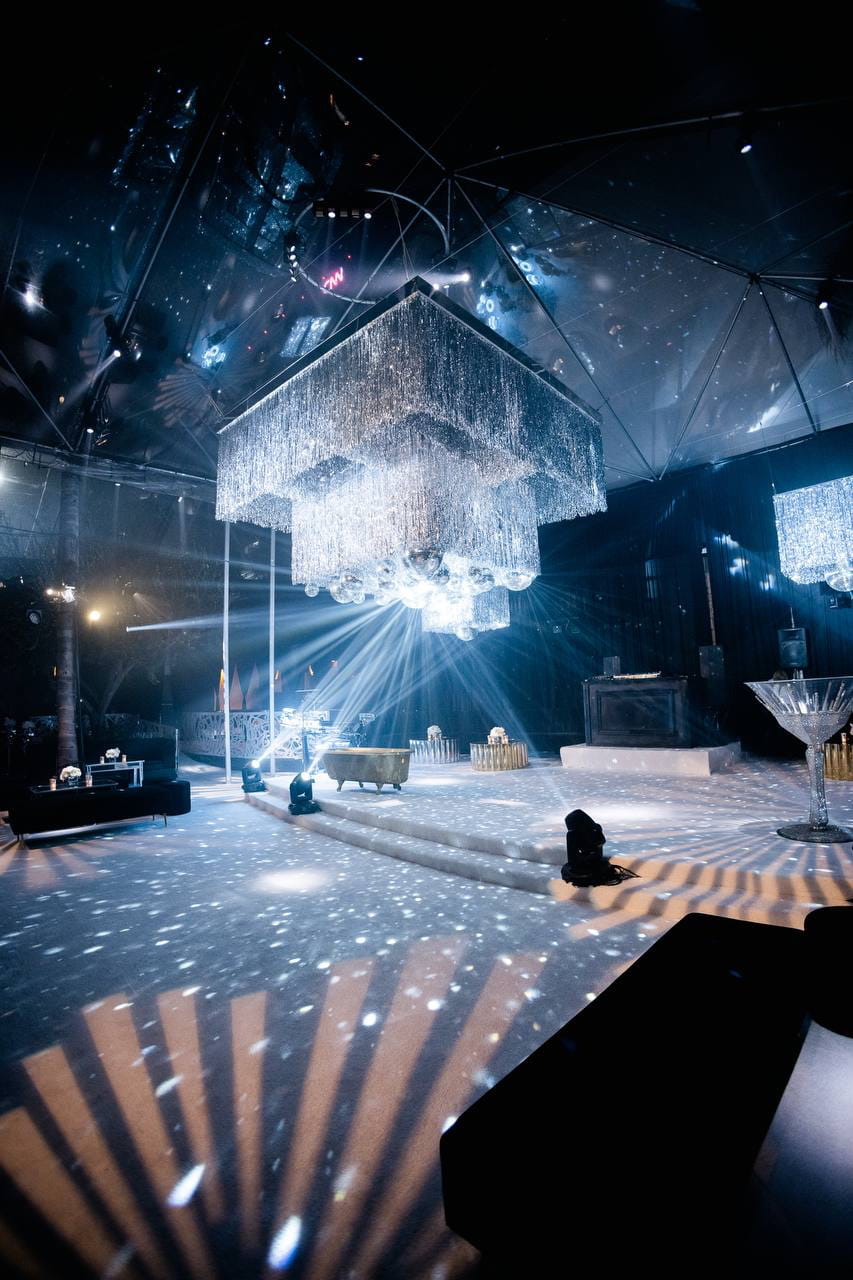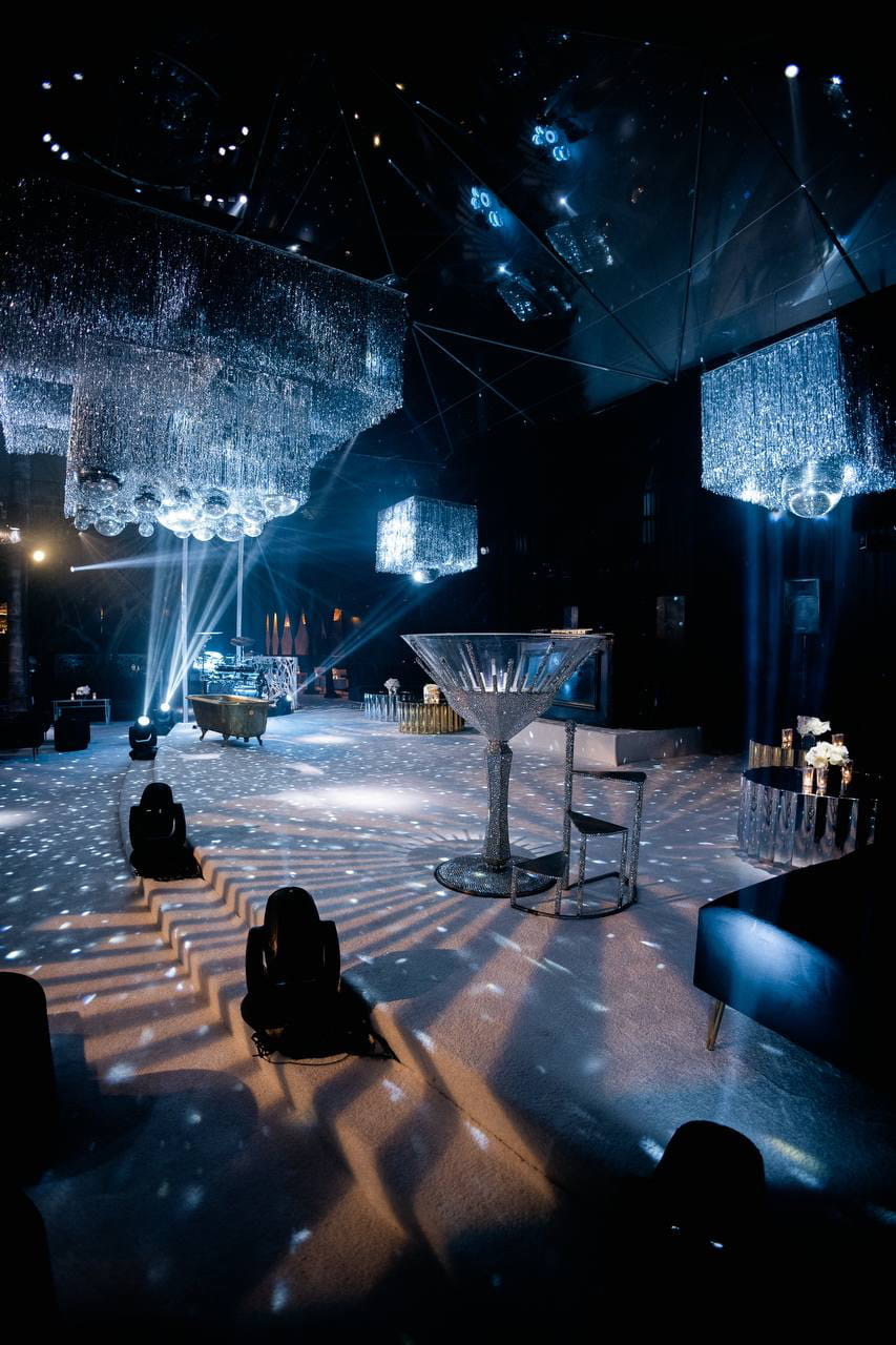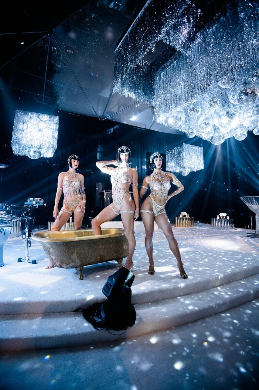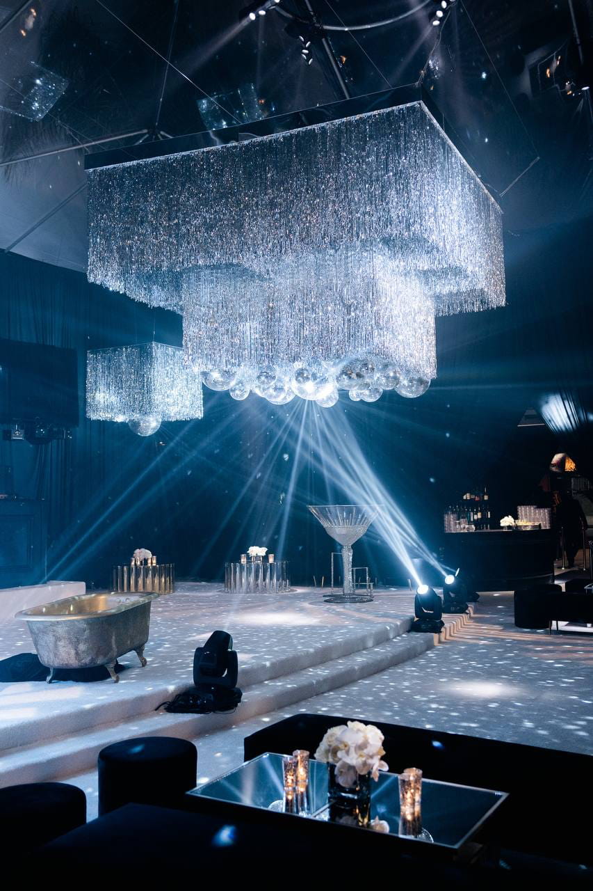 A real estate developer wanted more than a party. They wanted a statement. Inside Le Jardin, every surface became a canvas. Mirror spheres cascaded from the ceiling in clusters of light, a gilded bathtub stage held crystal-adorned performers, and an oversized martini glass anchored the room as pure sculpture. What guests walked into wasn't a venue. It was a world built to announce an arrival.